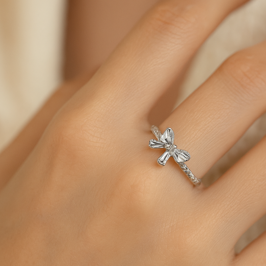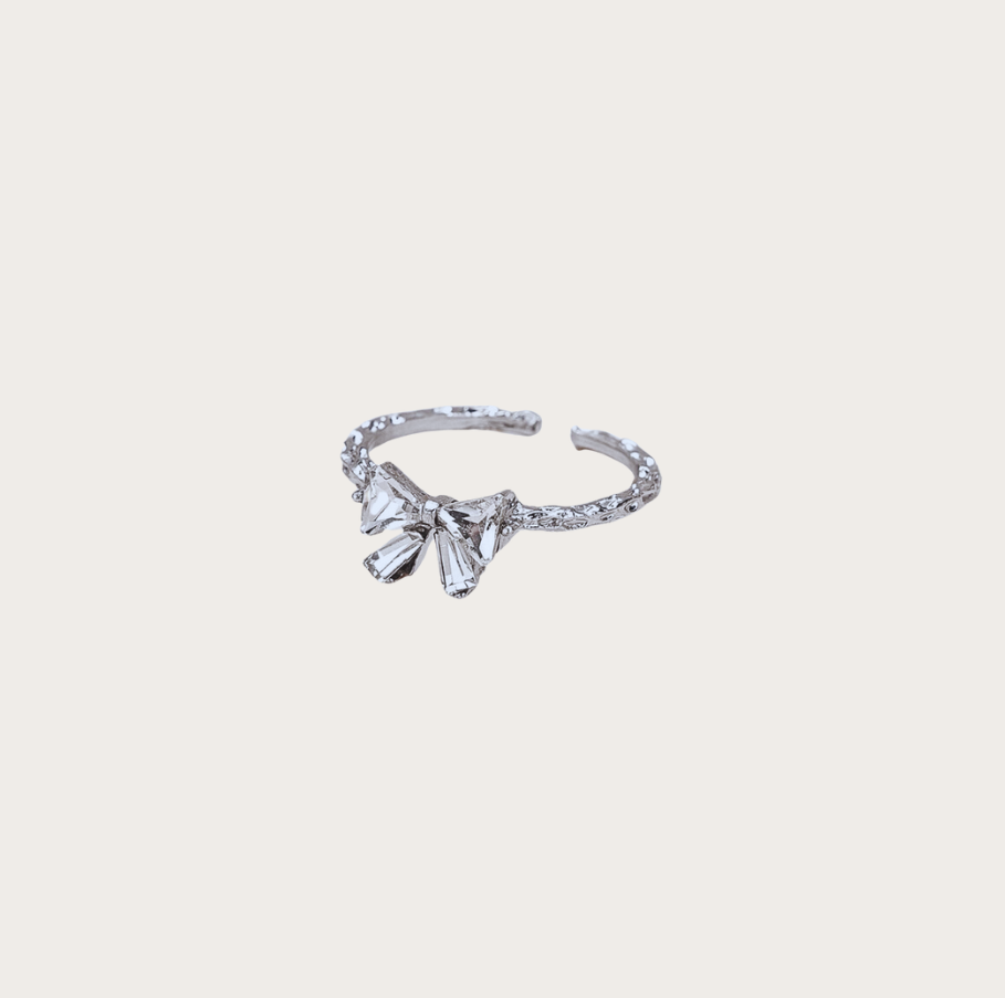 Adela Bow Ring Silver. A delicate silver ring with a sparkling zircon bow Perfect for adding a touch of elegance to any outfit.