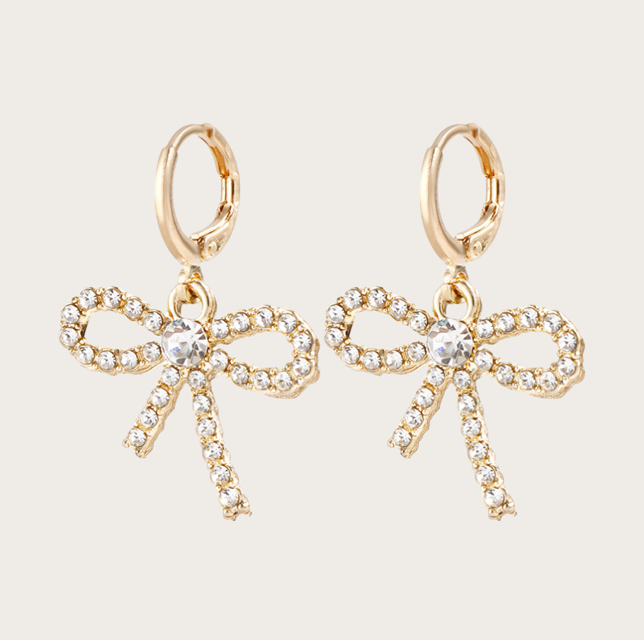 These gold bow earrings add the perfect charming touch.