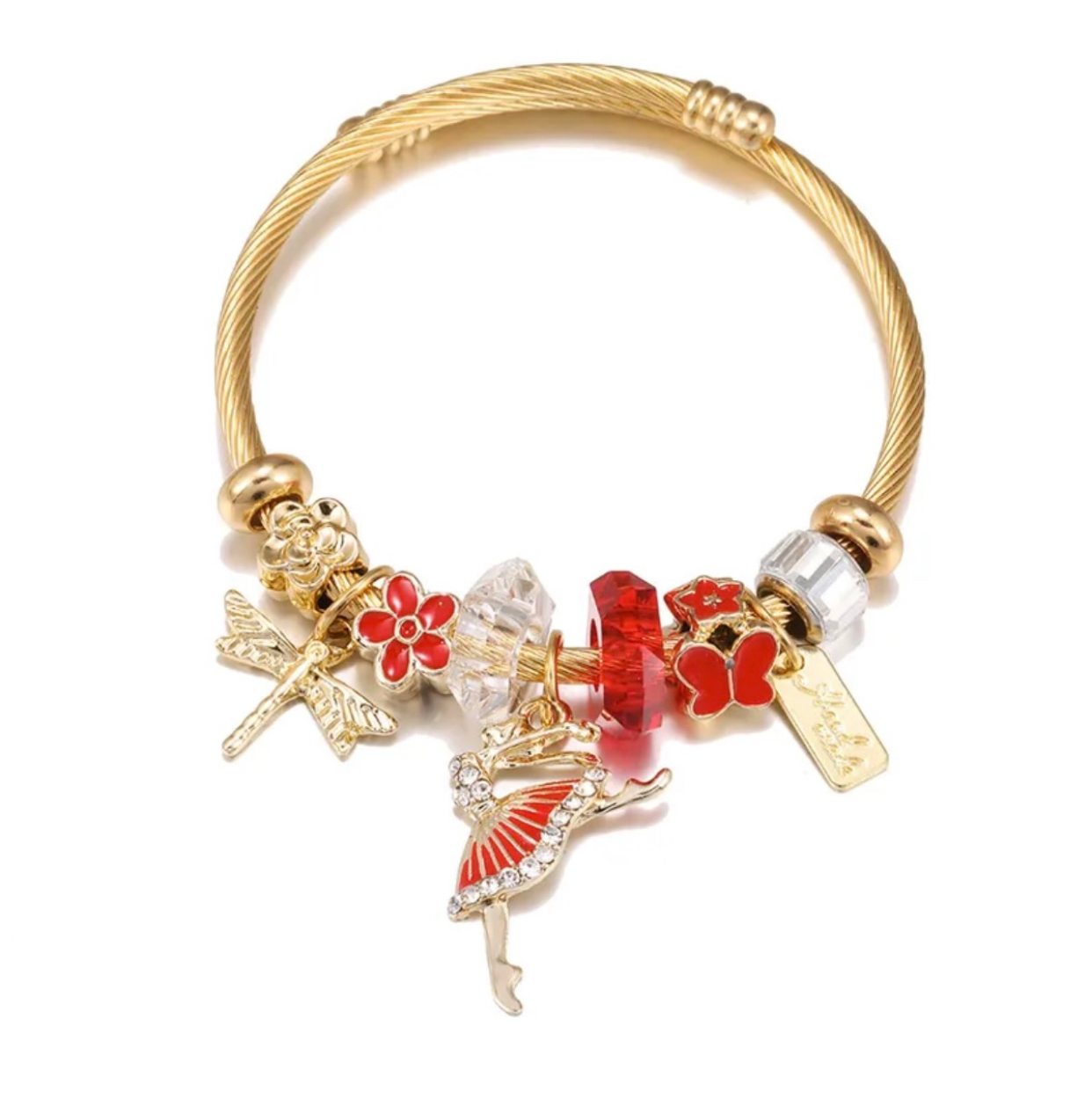 Charm bracelet gold & red
