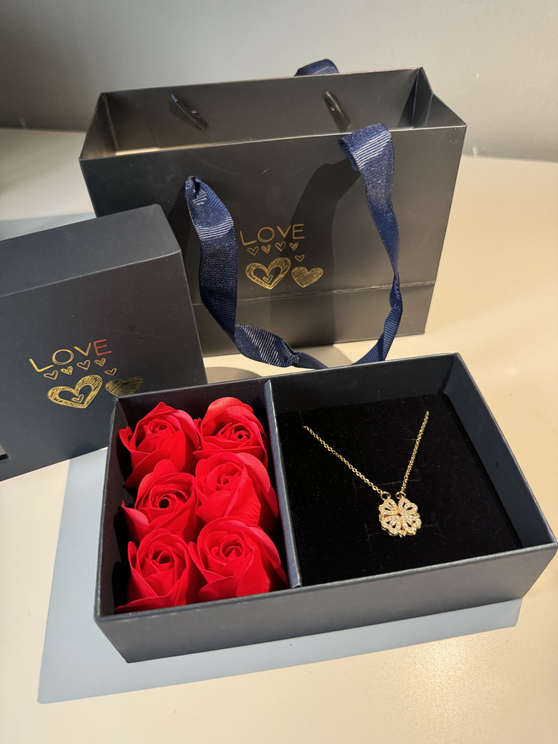 Clover heart necklace giftbox