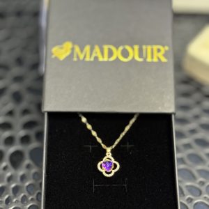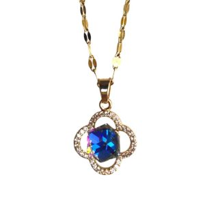 Gold necklace with a transparent light purple clover. The necklace is 18k gold plated. This necklace is made of stainless steel and has an adjustable clasp so you can wear it from 39 to 44 cm.