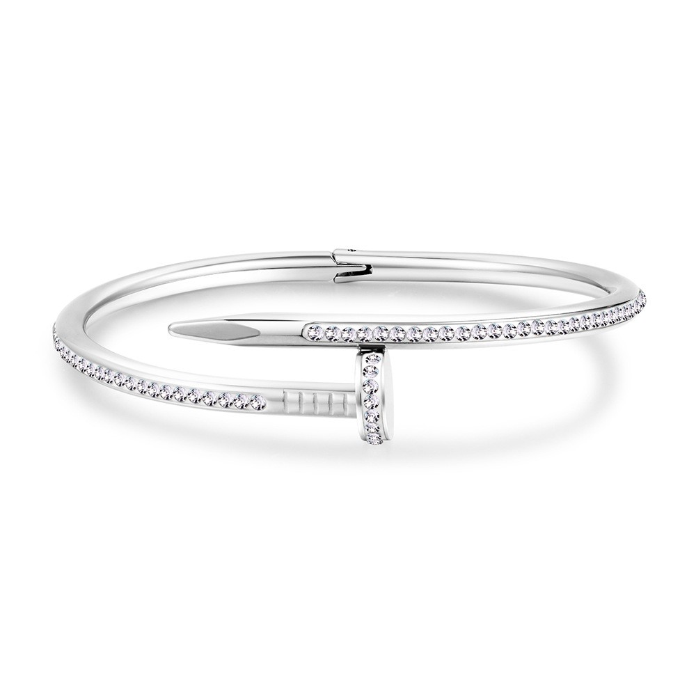 Silver spike bracelet with a lot of diamonds made of stainless steel.