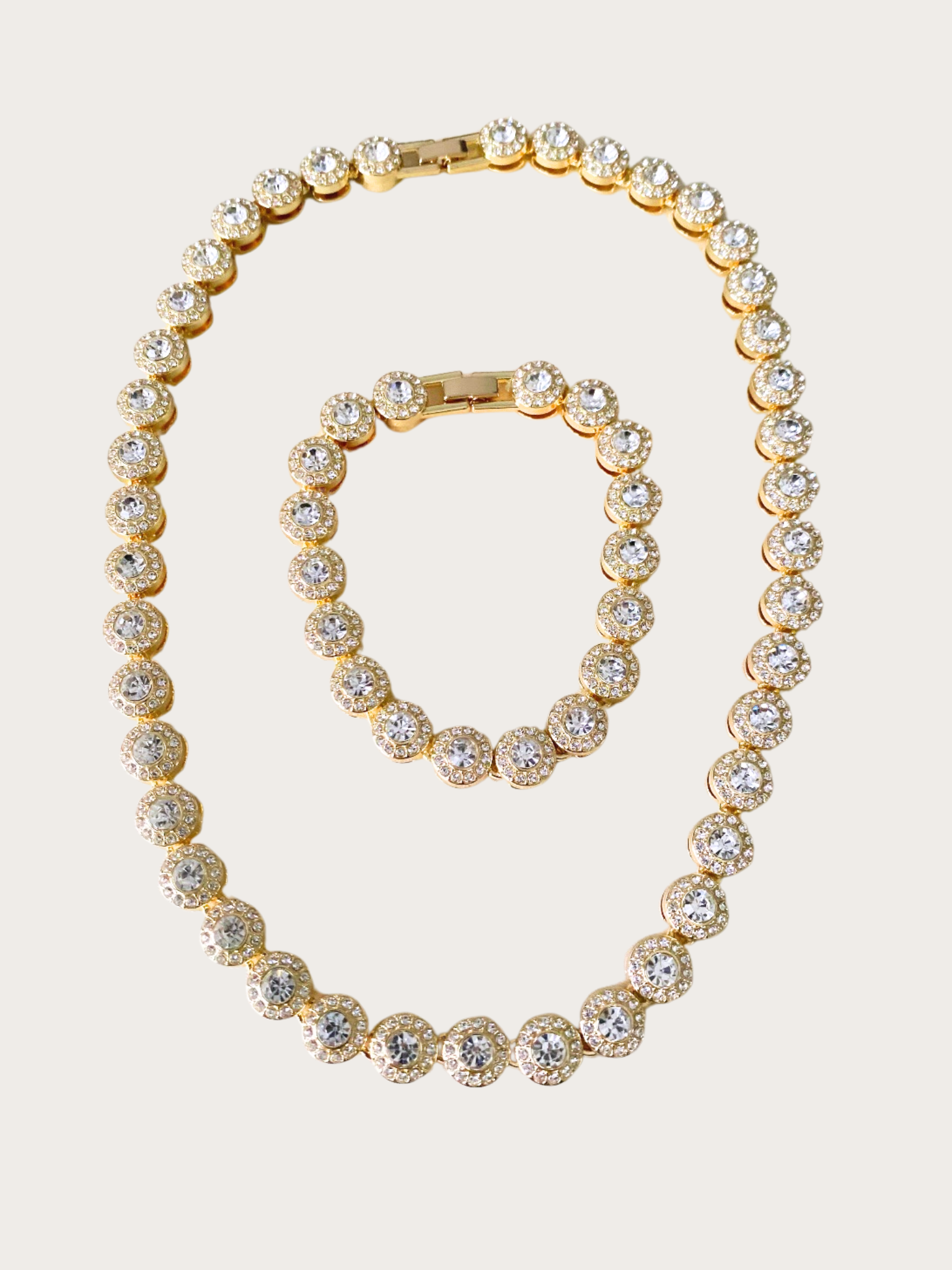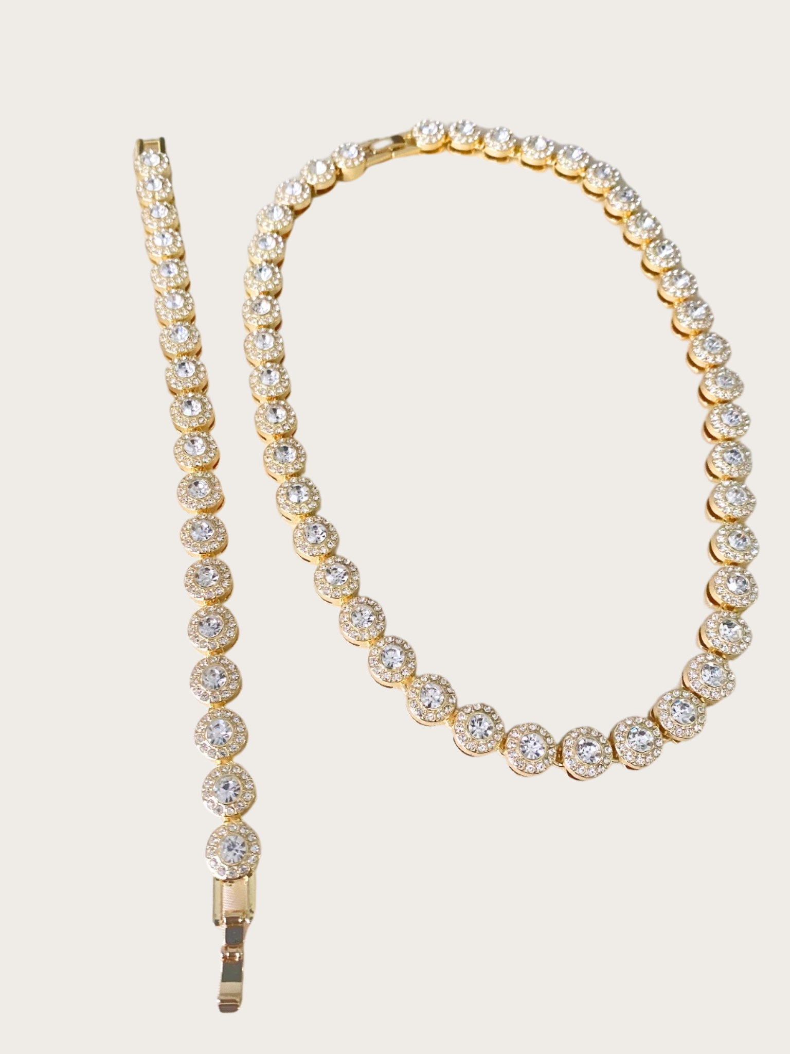 Elevate your style with the Gold Necklace and Bracelet.
