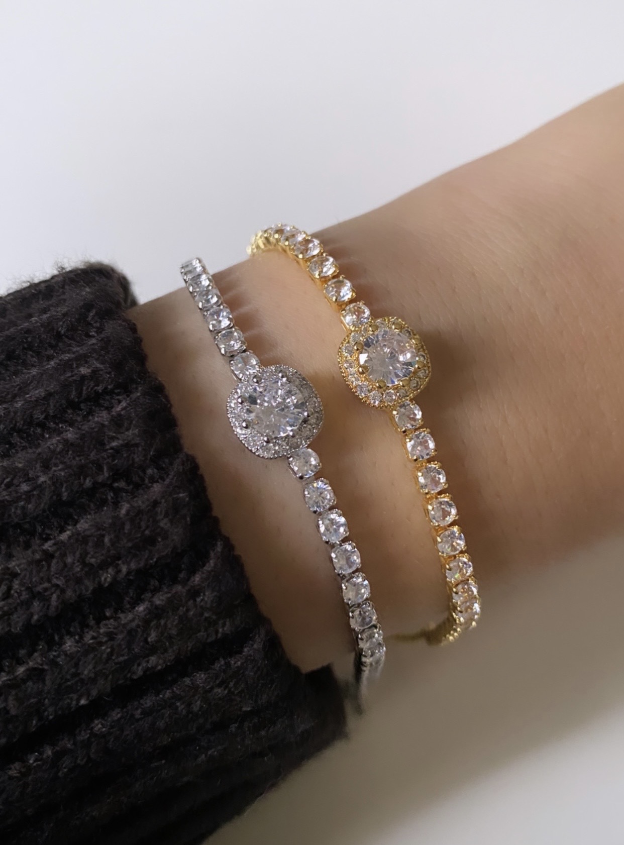 Gold & silver bracelet with zircon stones. The bracelet is gold plated. The bracelet is adjustable.