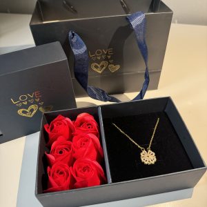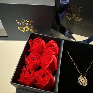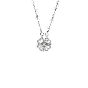 Silver necklace with four silver charms in the shape of a heart. The stones in the clover are rhinestones in the color white. This necklace is made of stainless steel and has an adjustable clasp so you can wear the necklace from 40 to 45 cm. You can also wear the necklace two ways.