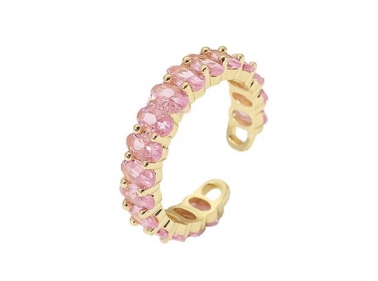 Gold ring with pink zircon stones. The ring is 18k gold plated.