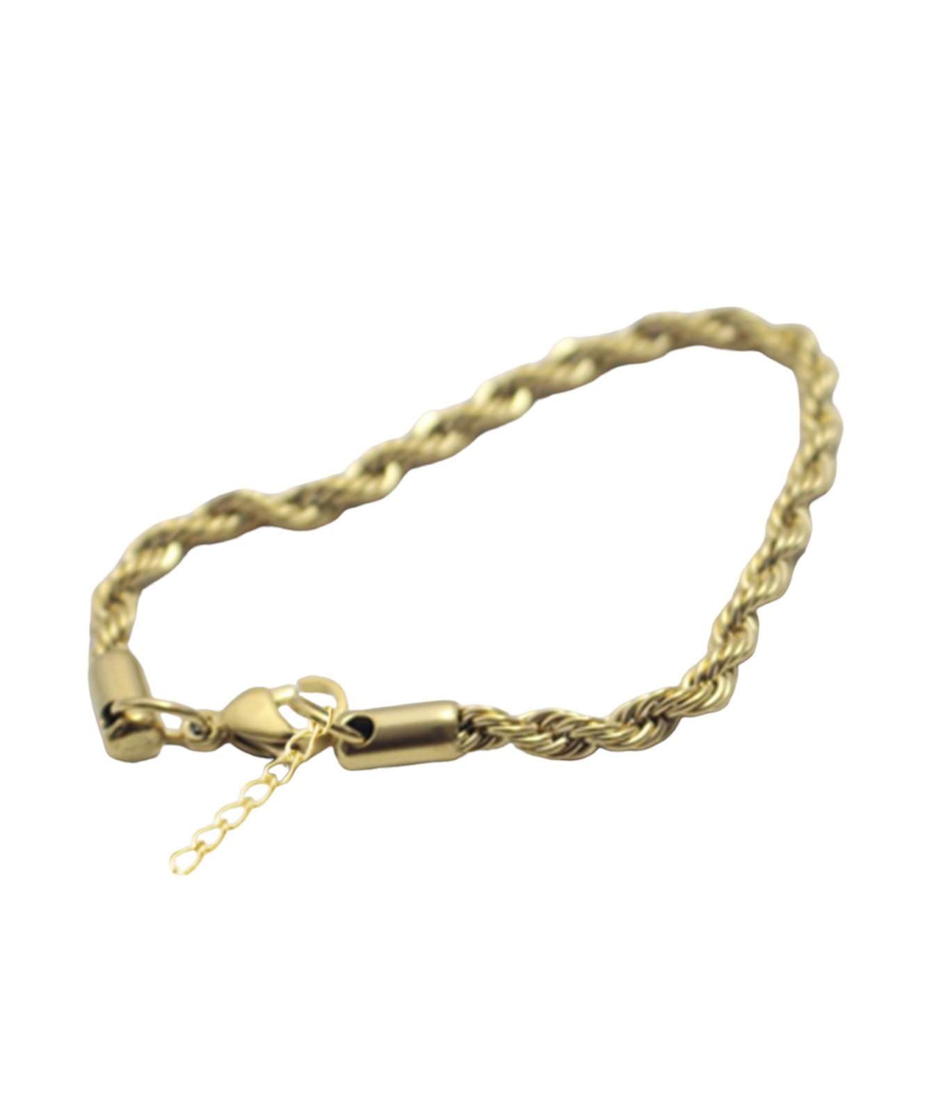 Rope bracelet gold. This bracelet is made of stainless steel and will not fade.