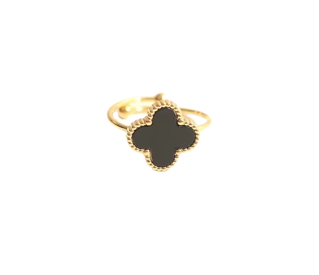 Stainless steel gold ring with a black clover.